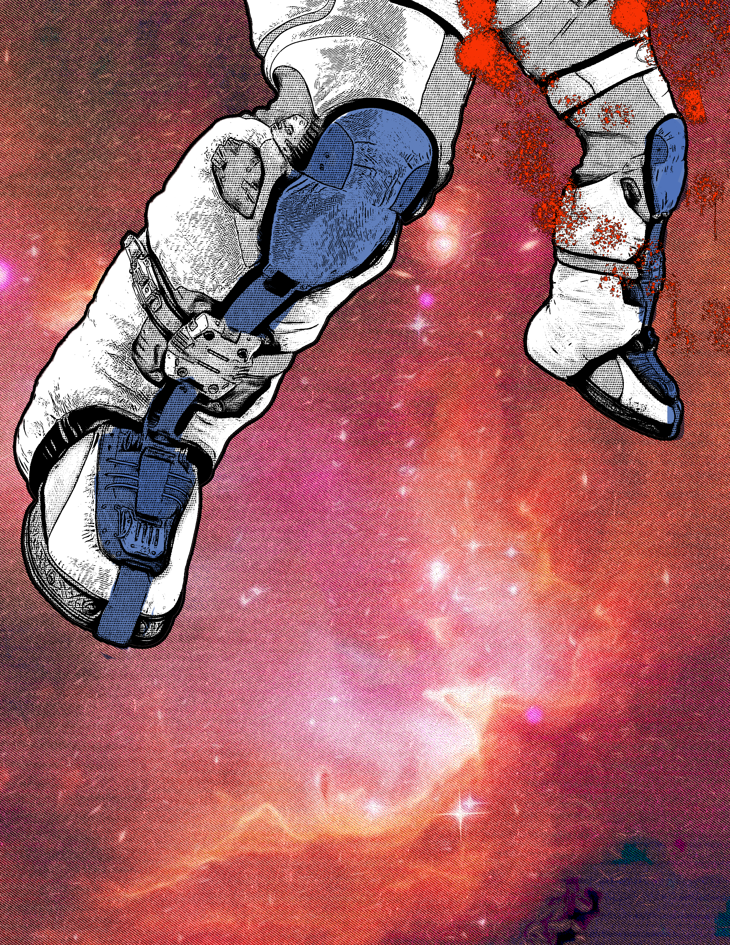 “Beautiful, isn’t it?” Zoey said as green sprays tinkled at the edges of Huisman’s faceplate, warning of rapid movement. He wanted to agree, to wonder at the tiny particles dancing around, lighting up his display in verdant swirls. Some less poetic part of him wanted to remind his partner that even these minor showers could contain chunks sufficient to render catastrophe. Before he could speak, he was proven right. Stray debris smashed into Zoey’s tether.